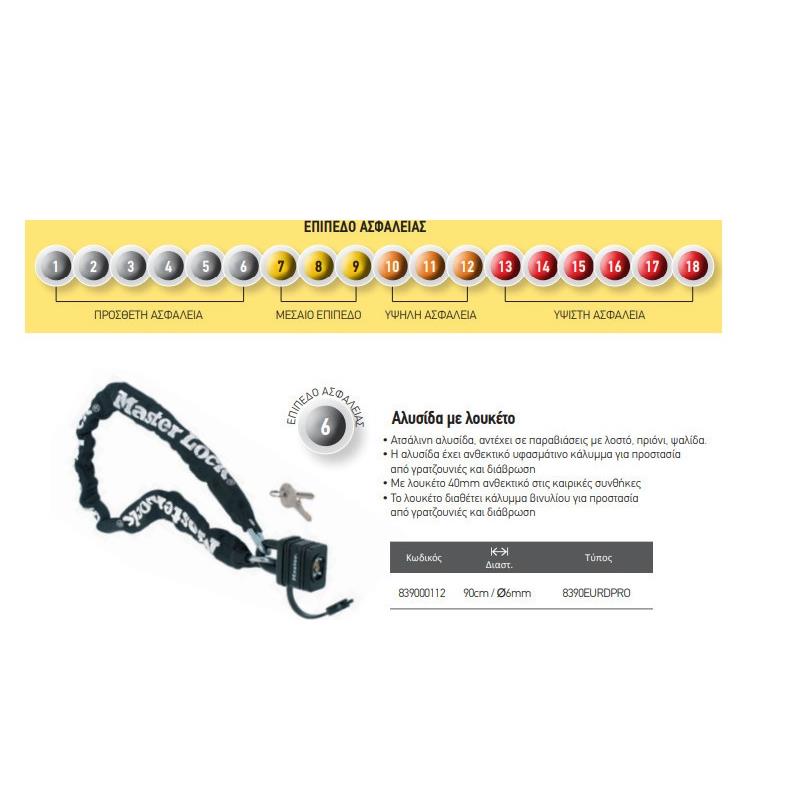 Αλυσίδα Master Lock 8390EURDPRO με λουκέτο Φ6mm