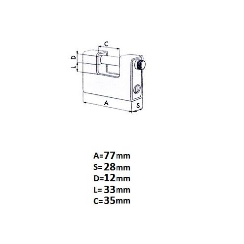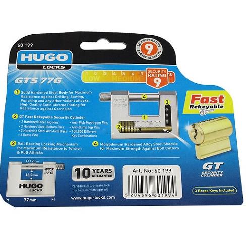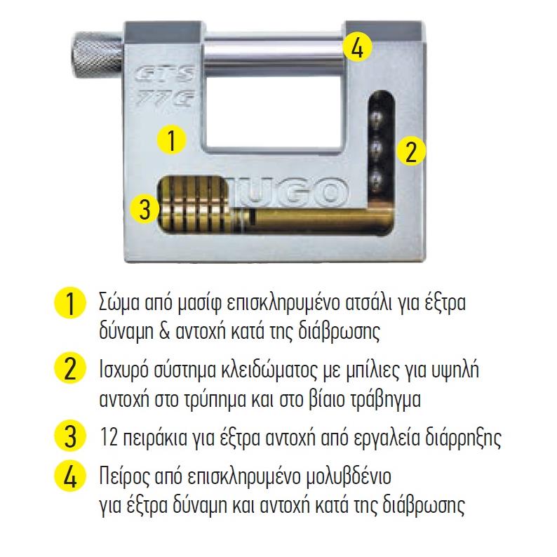 Ατσάλινο λουκέτο HUGO GTS 77G με ενισχυμένο πίρο από επισκληρυμένο ατσάλι.