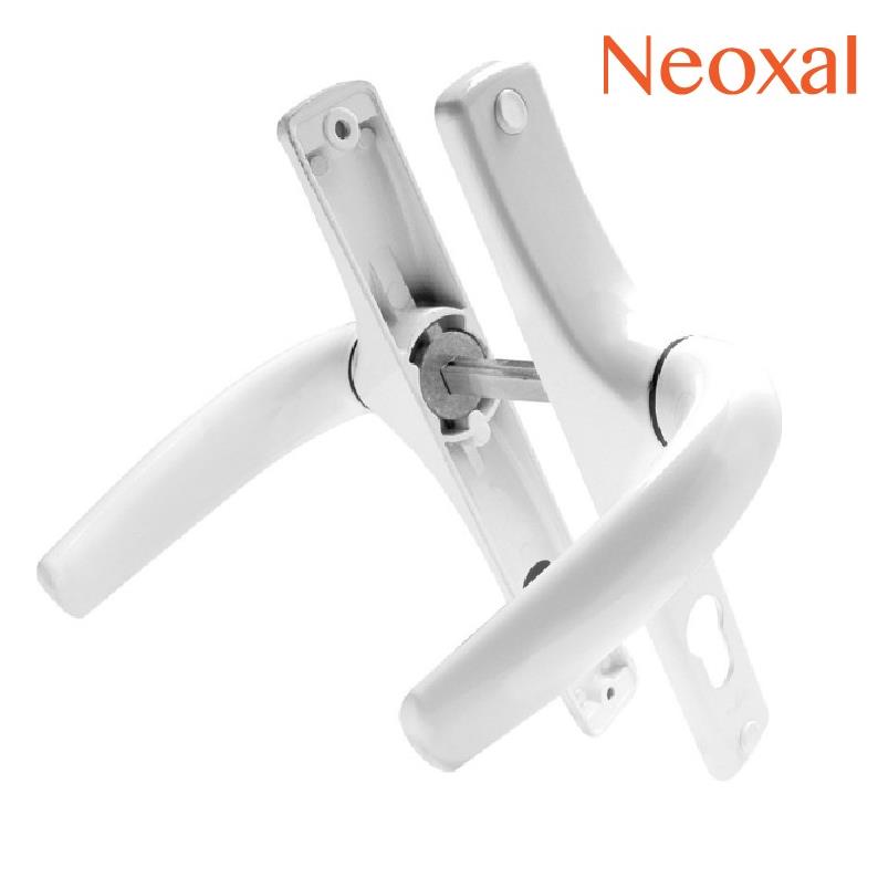 Χερούλια εξώπορτας αλουμινίου με πλάκα NEOXAL σε λευκό χρώμα.