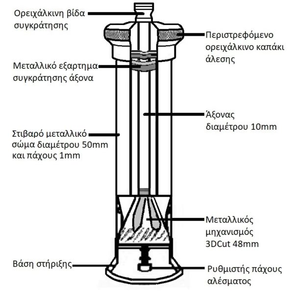 Ο μηχανισμός ρυθμίζεται ώστε να αλέθει από πολύ λεπτό έως και πολύ χοντρό απευθείας πάνω