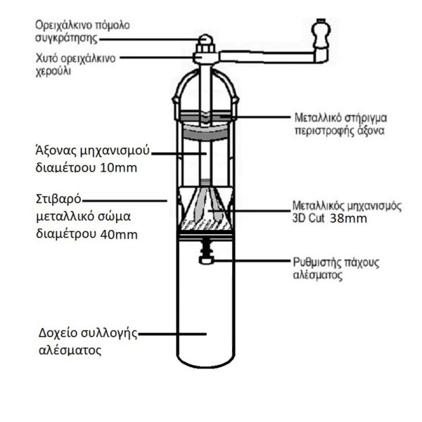 διαμέτρου 38mm, με σύστημα 3DCut, ο οποίος έχει σχεδιαστεί για να αλέσει πραγματικά το πιπέρι και