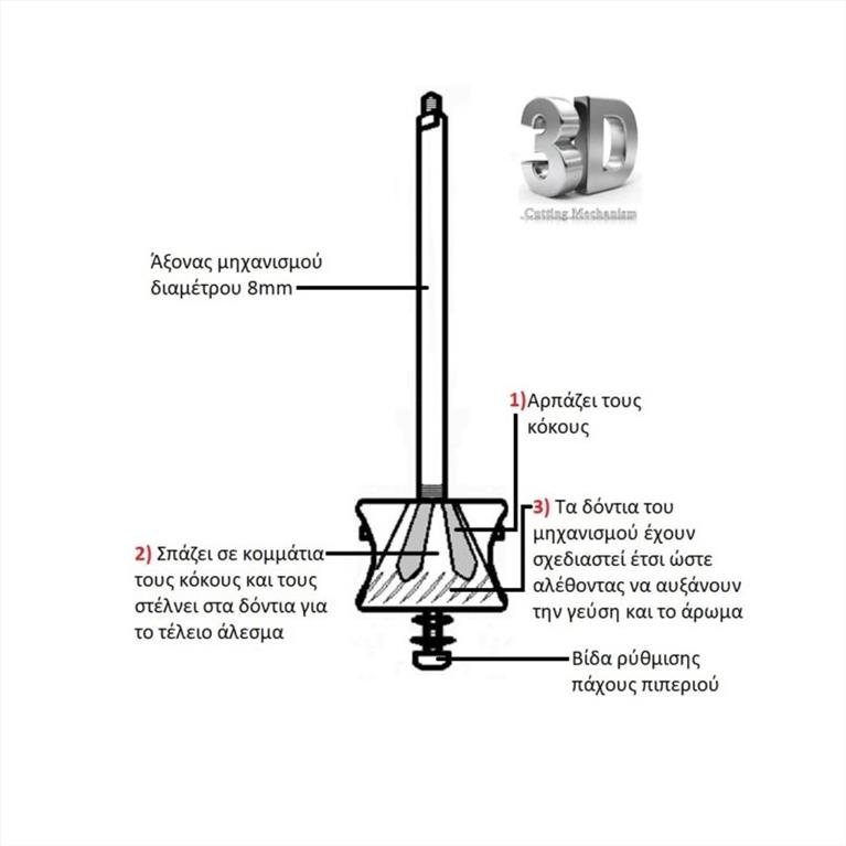 Ρυθμιζόμενος μηχανισμός ώστε να αλέθει από πολύ λεπτό έως και πολύ χοντρό