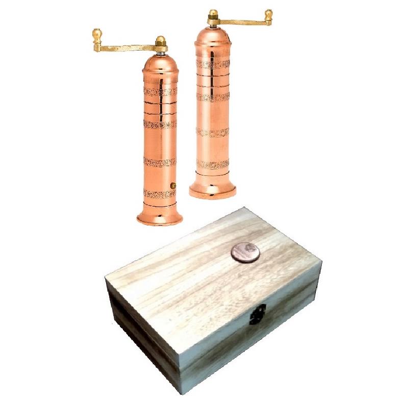 Σετ χάλκινων μύλων για πιπέρι και αλάτι ALEXANDER σε πολυτελή ξύλινη συσκευασία