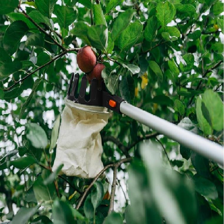 Το σχήμα του διασφαλίζει ότι τα φρούτα πέφτουν απευθείας στη σακούλα κατασκευασμένη από ανθεκτικό βαμβάκι.