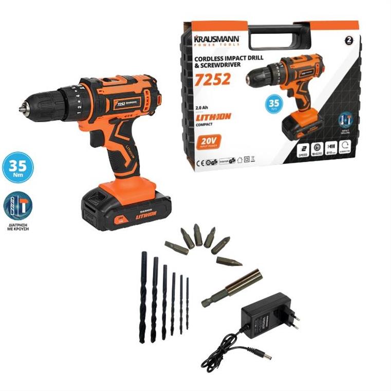 Δραπανοκατσάβιδο κρουστικό επαναφορτιζόμενο 20V KRAUSMAN 7252