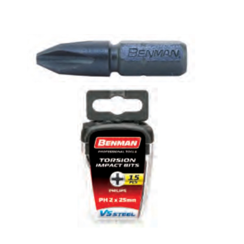 Μύτες σταυρού Benman PH2 x 25mm 15 τεμαχίων.