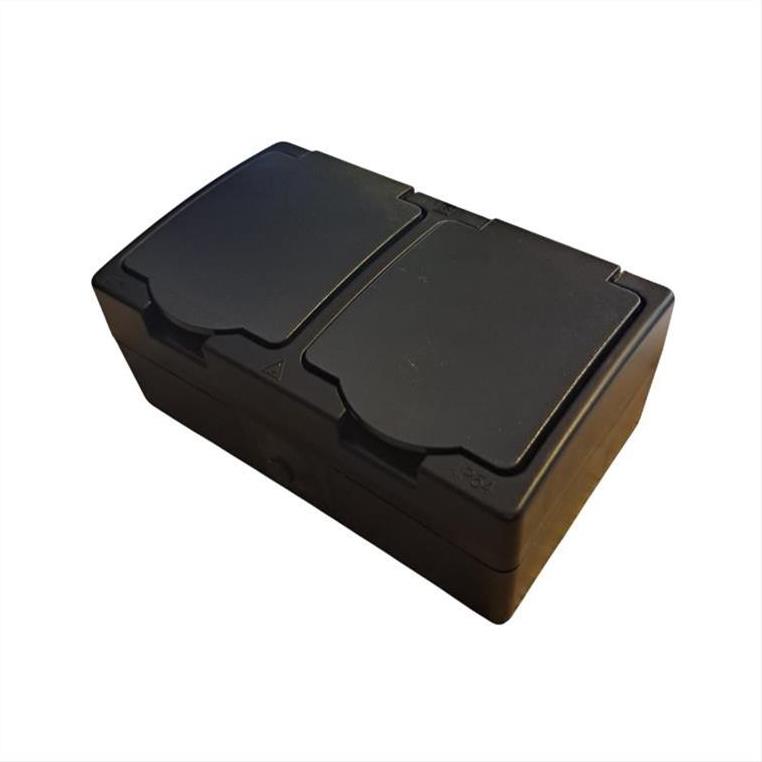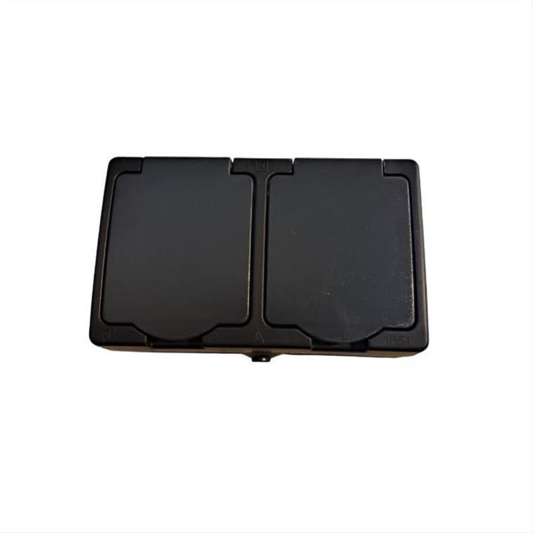 Διπλή πρίζα για εξωτερική χρήση με καπάκι μαύρη IP54 LINEME 50-00514-2