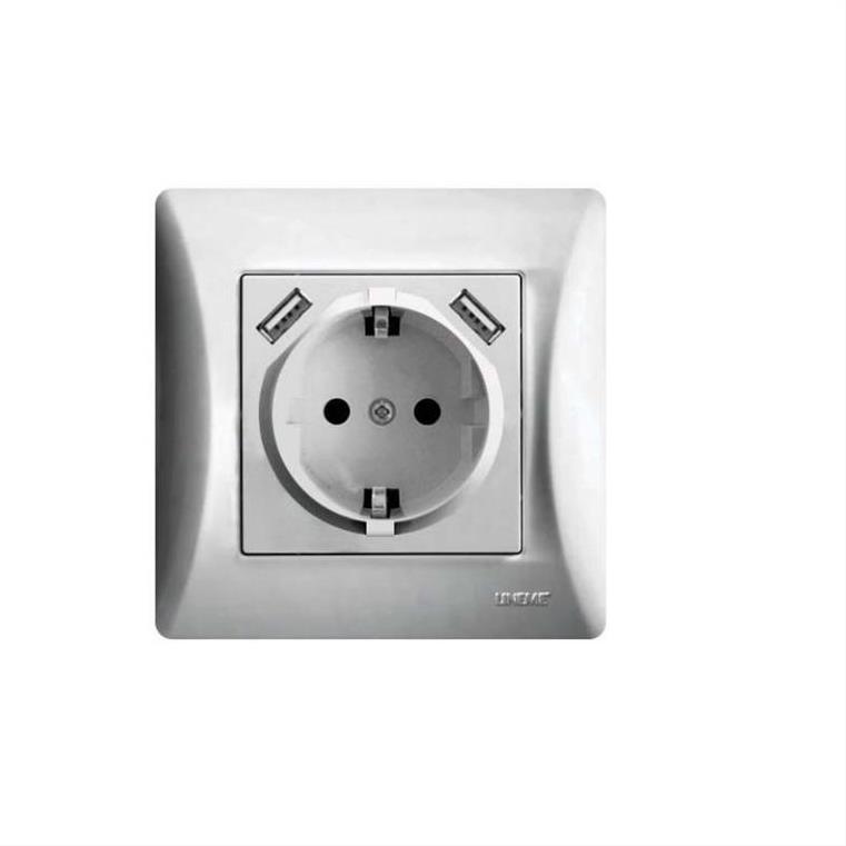 Πρίζα σούκο ασημί με δύο θύρες USB LINEME 50-00133-5