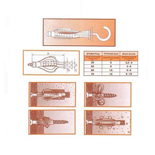 Ούπα με ροδέλα, HARD PLAST ειδικά για μπετόν, τούβλα, γυψοσανίδες αλλά και