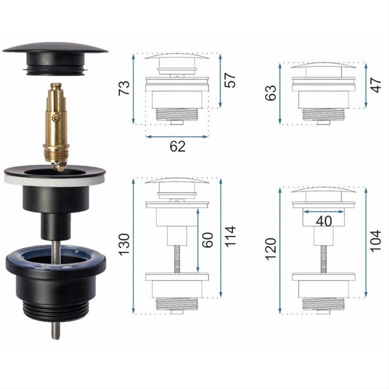 Βαλβίδα νιπτήρος μαύρη Pop Up universal 1 1/4″ Ideal 04060/SB