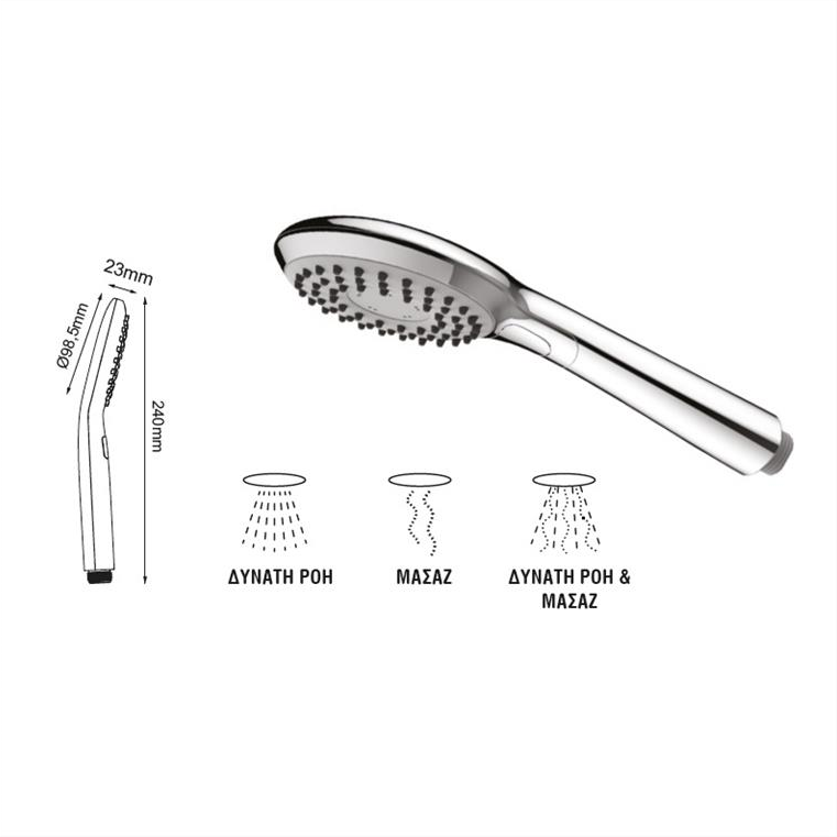 Δυνατή ροή – μασάζ – δυνατή ροή και μασάζ.