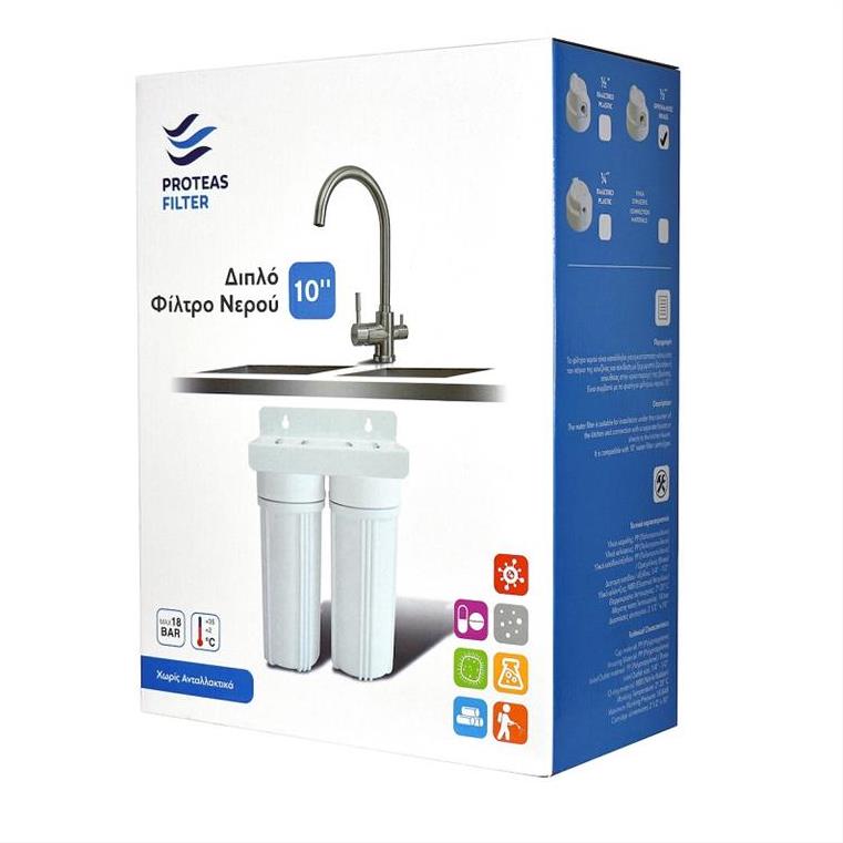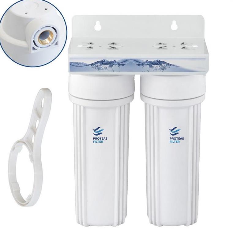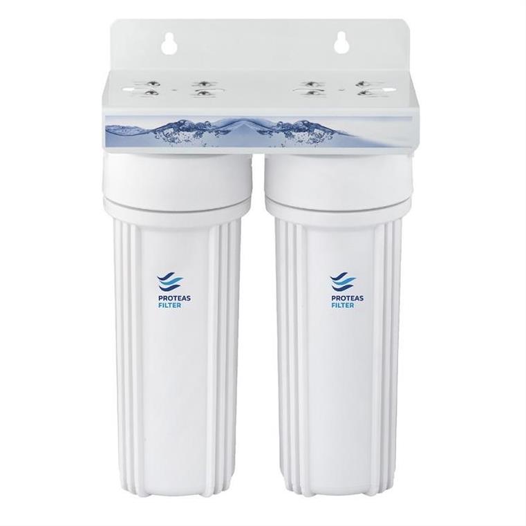 Συσκευή φίλτρου νερού κάτω πάγκου διπλό EW-013-0204 Proteas Filter λευκό 1/2” ορειχάλκινο σπείρωμα